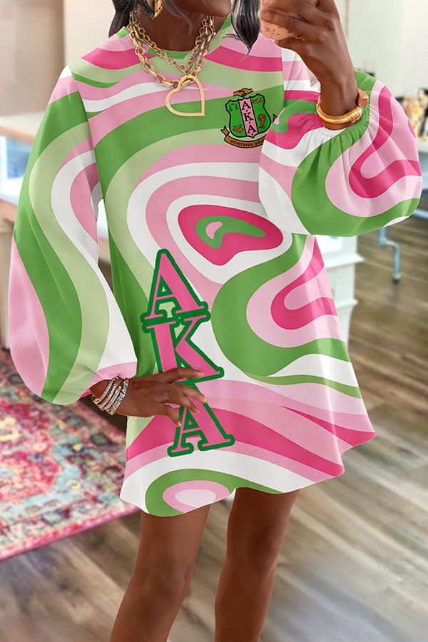 Alpha Kappa Alpha Sorority Abstract Print Sweatshirt Dress