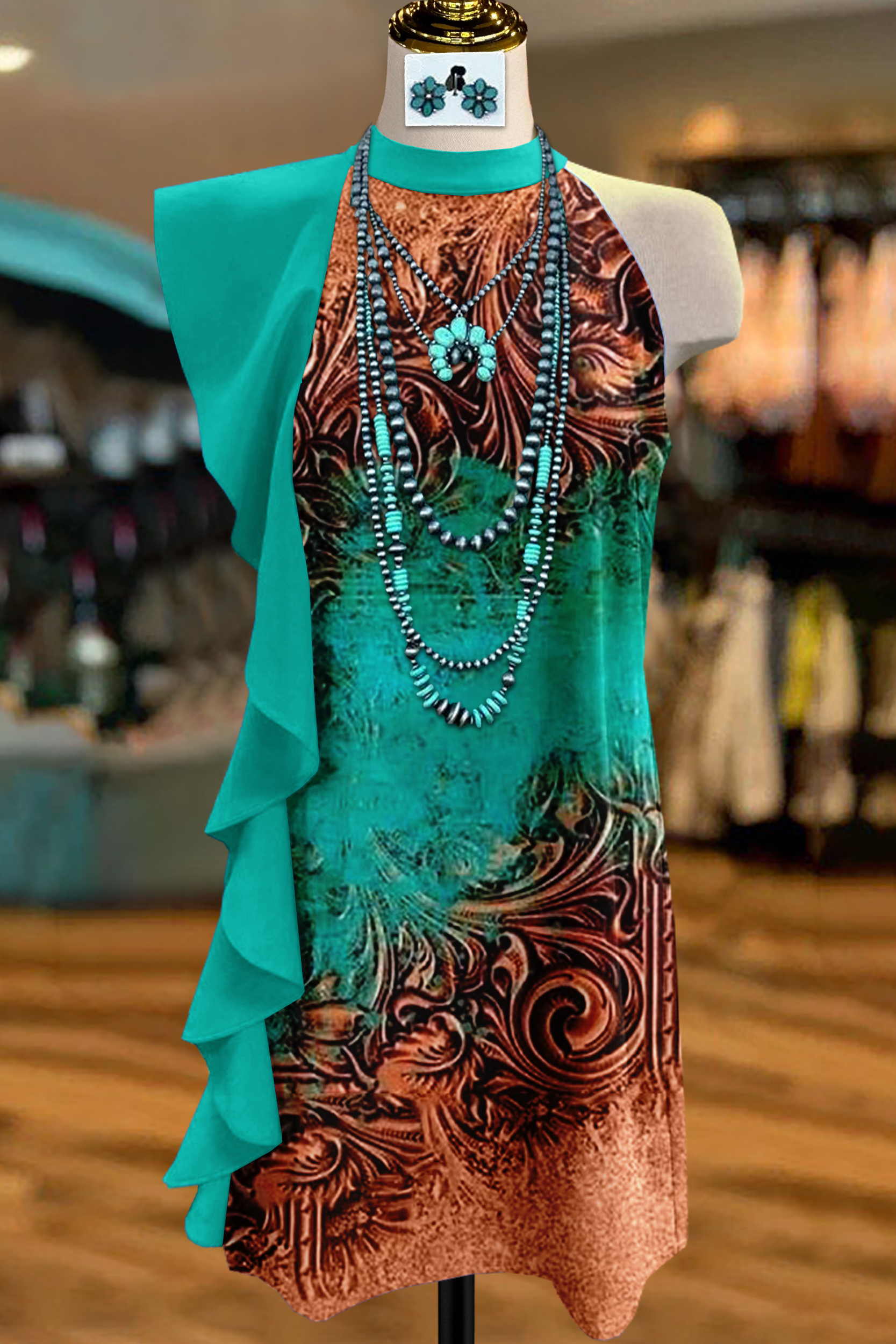 Vintage Print Asymmetric Ruffle Dress